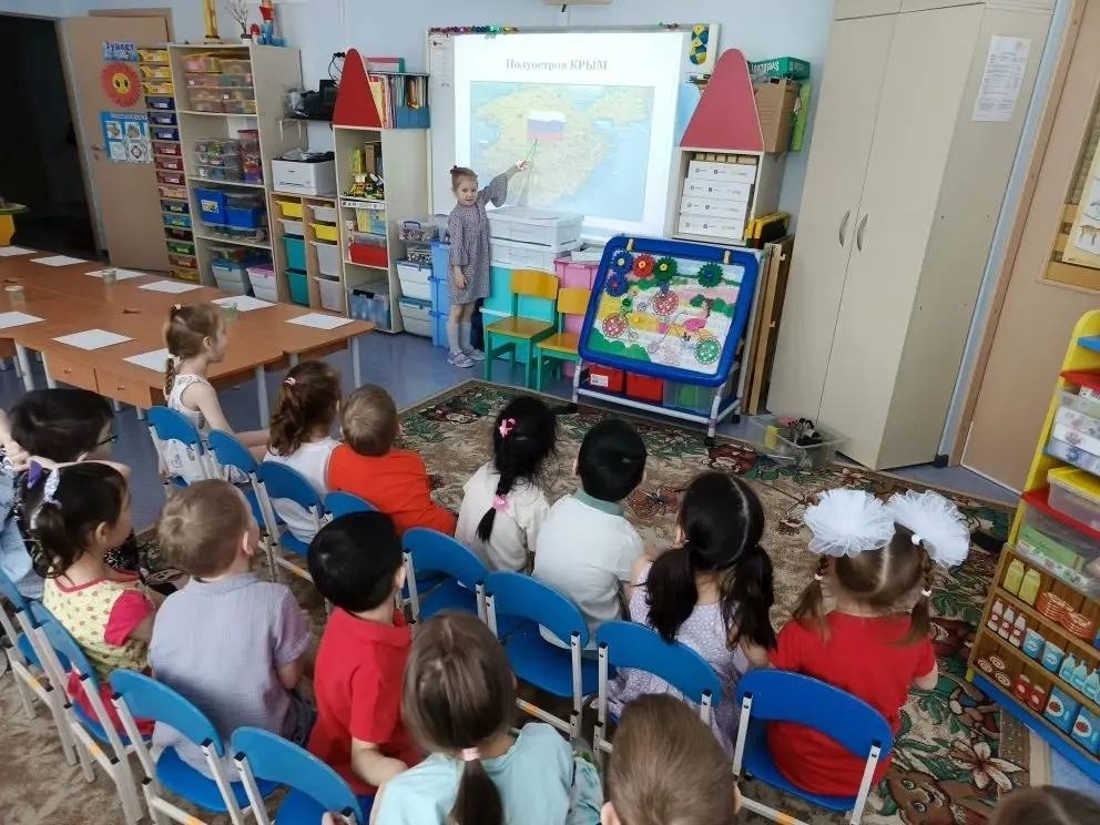 Ребята узнали исторические подробности этого праздника, окунулись в атмосферу Крымской весны, рассматривая яркие иллюстрации и слушая рассказы воспитателей об истории Крыма, его достопримечательностях и природе полуострова.